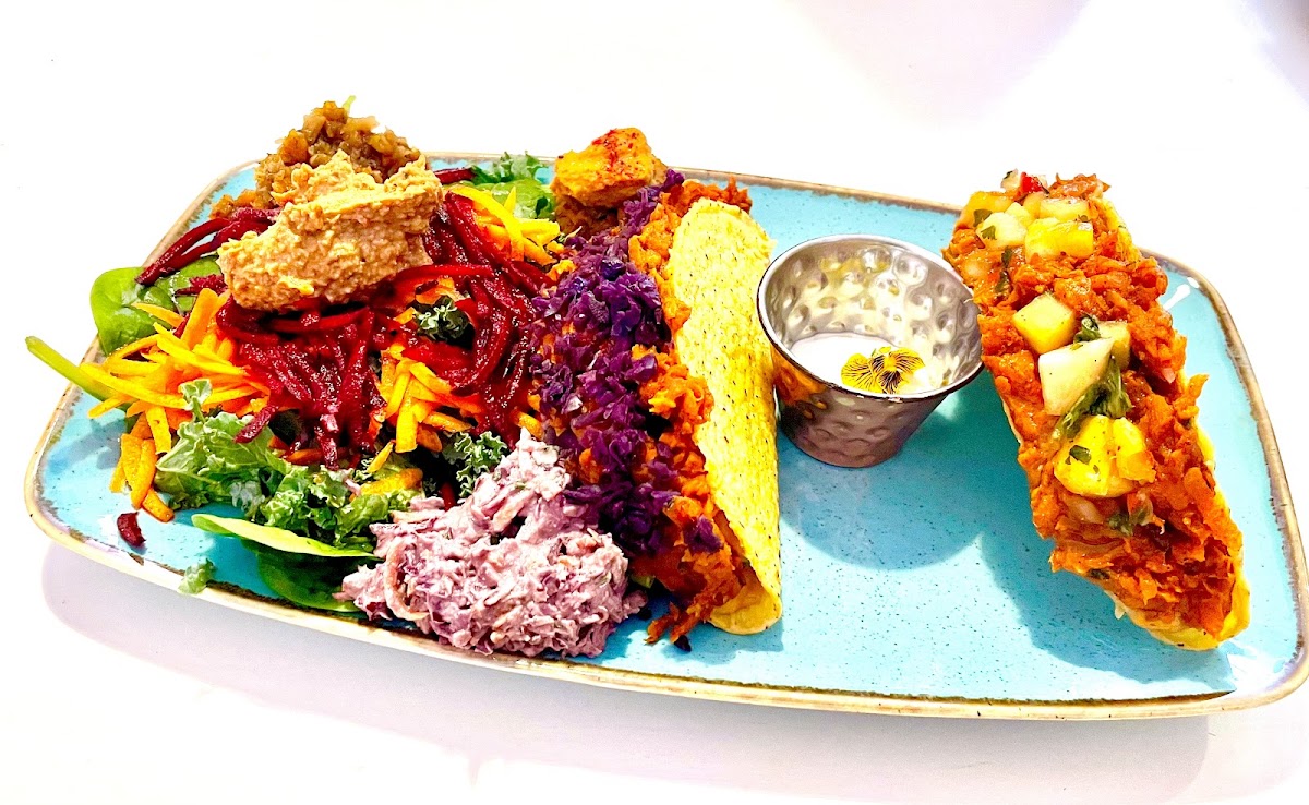 The menu at Alkaline Kitchen is a celebration of plant-based creativity. Every dish feels intentional, packed with flavour, and designed to leave you feeling satisfied rather than heavy. One of the standout favourites is the Thai Buddha Bowl, a balanced mix that feels nourishing and bold at the same time. It’s the kind of dish that keeps regulars coming back, especially those who enjoy vibrant textures and well-layered flavours. The BBQ Tacos bring a completely different vibe, offering smoky, comforting notes that prove vegan food can be just as indulgent as it is wholesome.